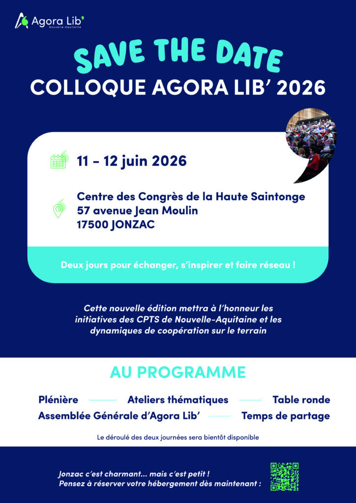 C’est dans cette dynamique qu’Agora Lib’ organise son colloque régional inter-CPTS 2026, les 11 et 12 juin prochains à Jonzac, dans un format élargi sur 1,5 jour.
