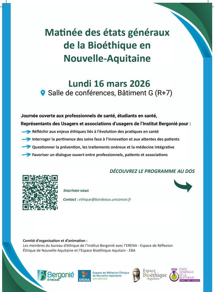 Dans le cadre des États généraux de la bioéthique 2026 organisés par le Comité consultatif national d’éthique (CCNE), l’Institut Bergonié, en collaboration avec l’ERENA – Espace de réflexion éthique de Nouvelle-Aquitaine, propose une matinée de réflexion consacrée à la sobriété en santé.